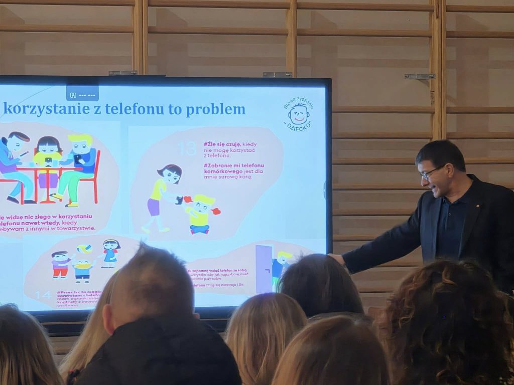 W minionym tygodniu rodzice naszych uczniów mieli okazję wziąć udział w spotkaniu profilaktycznym poświęconym profilaktyce negatywnych nawyków oraz zagrożeń wynikających z nadmiernego korzystania przez dzieci i młodzież z telefonów i ekranów.
