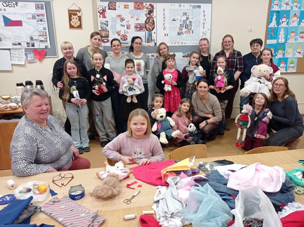 Wszystkie panie – te małe i duże – wykazały się pomysłowością i zaangażowaniem. Już od pierwszej minuty w ruch poszły nożyczki, szpilki, koronki, tasiemki… i inne akcesoria krawieckie. Przyniesione przez dziewczynki przytulanki zyskały nowe stylizacje. Miło było posłuchać rozmów toczonych przy kawie i pysznym ciasteczku oraz zobaczyć jak współpracują ze sobą trzy pokolenia pań.